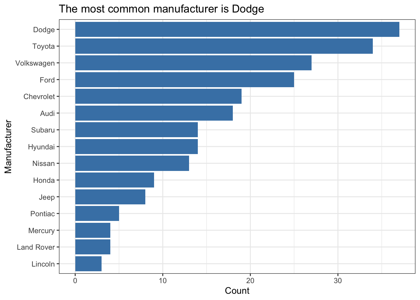 title = "The most common manufacturer is Dodge") +