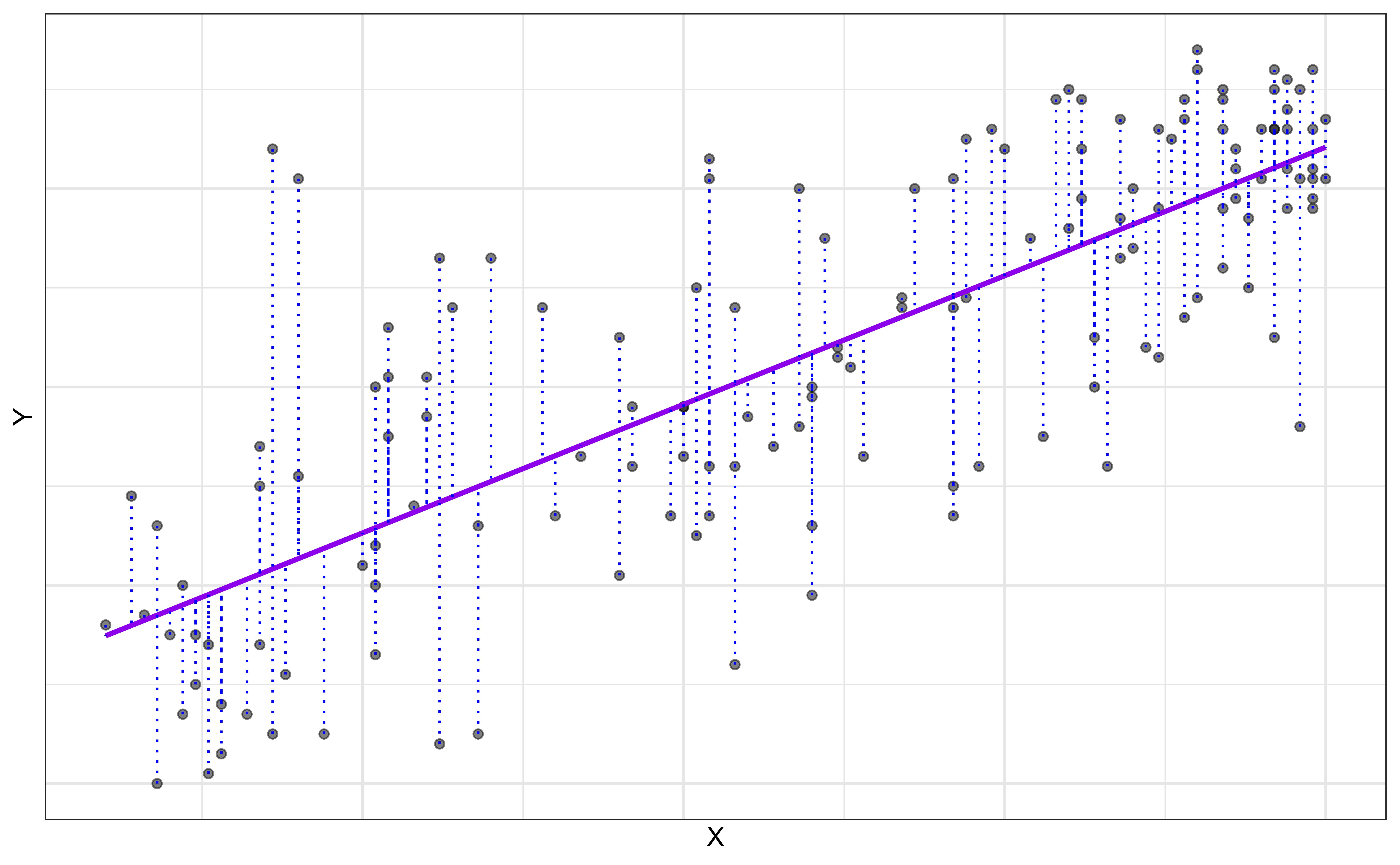 - The Ordinary Least Squares (OLS) line is the one that minimizes the sum of squared residuals