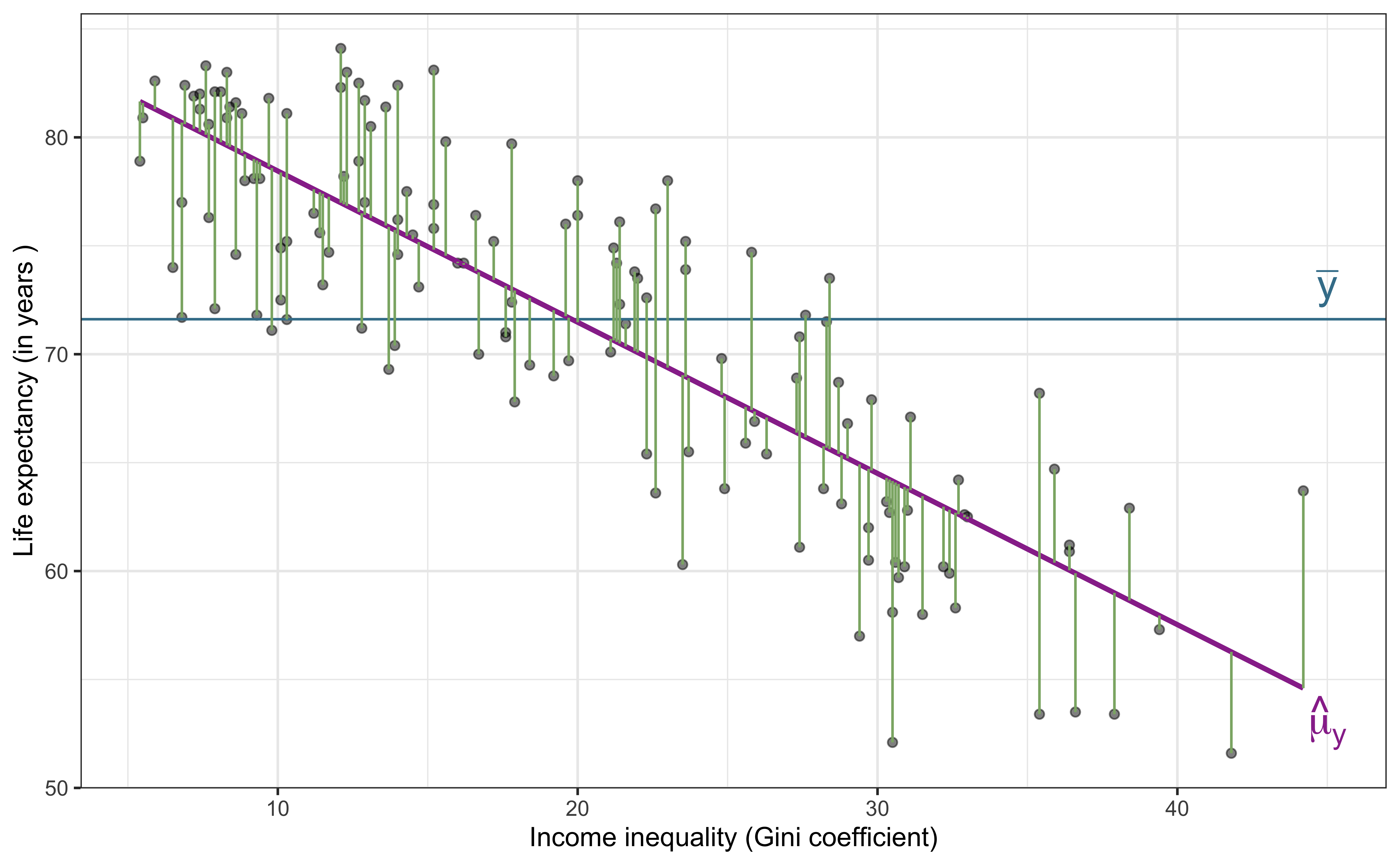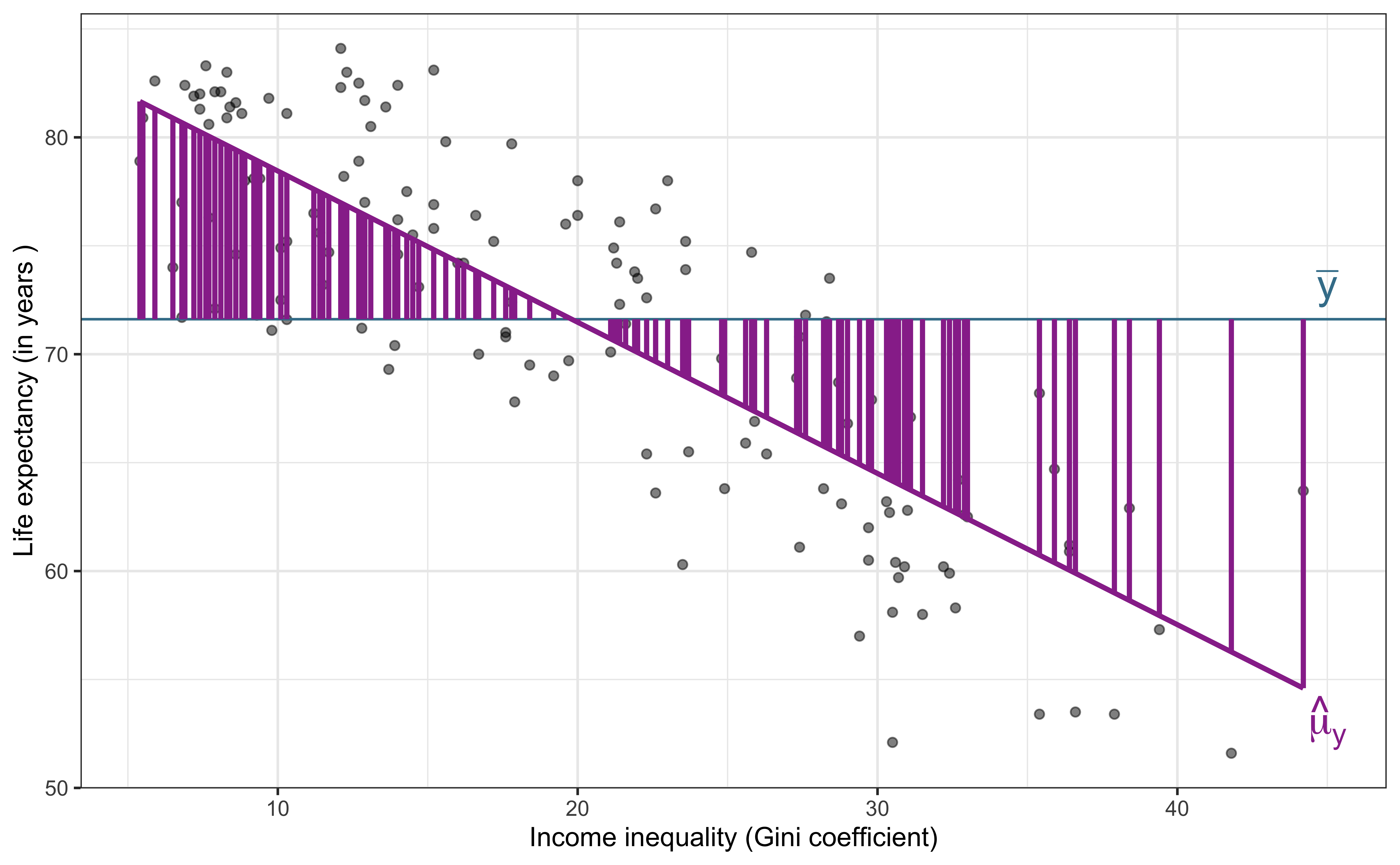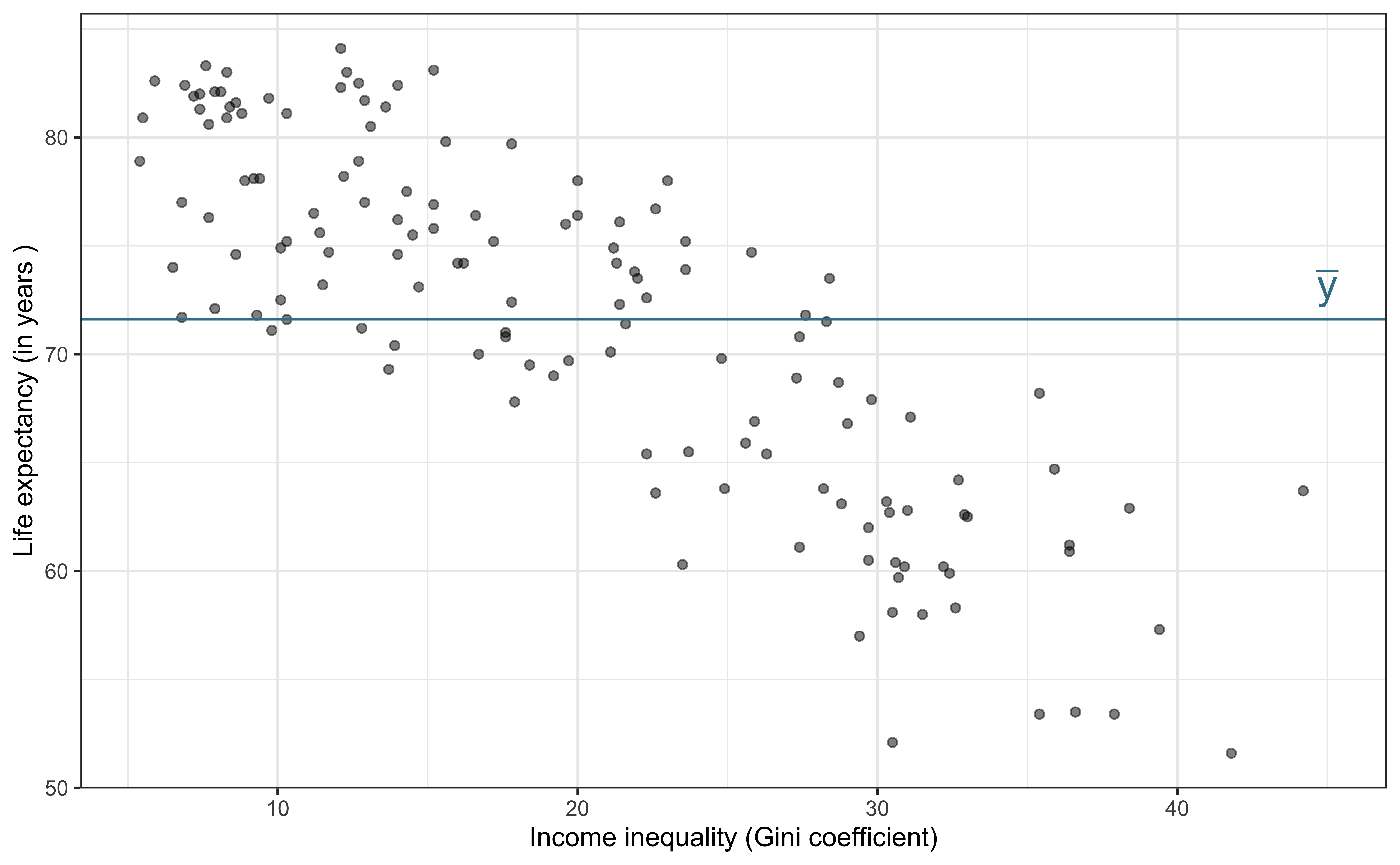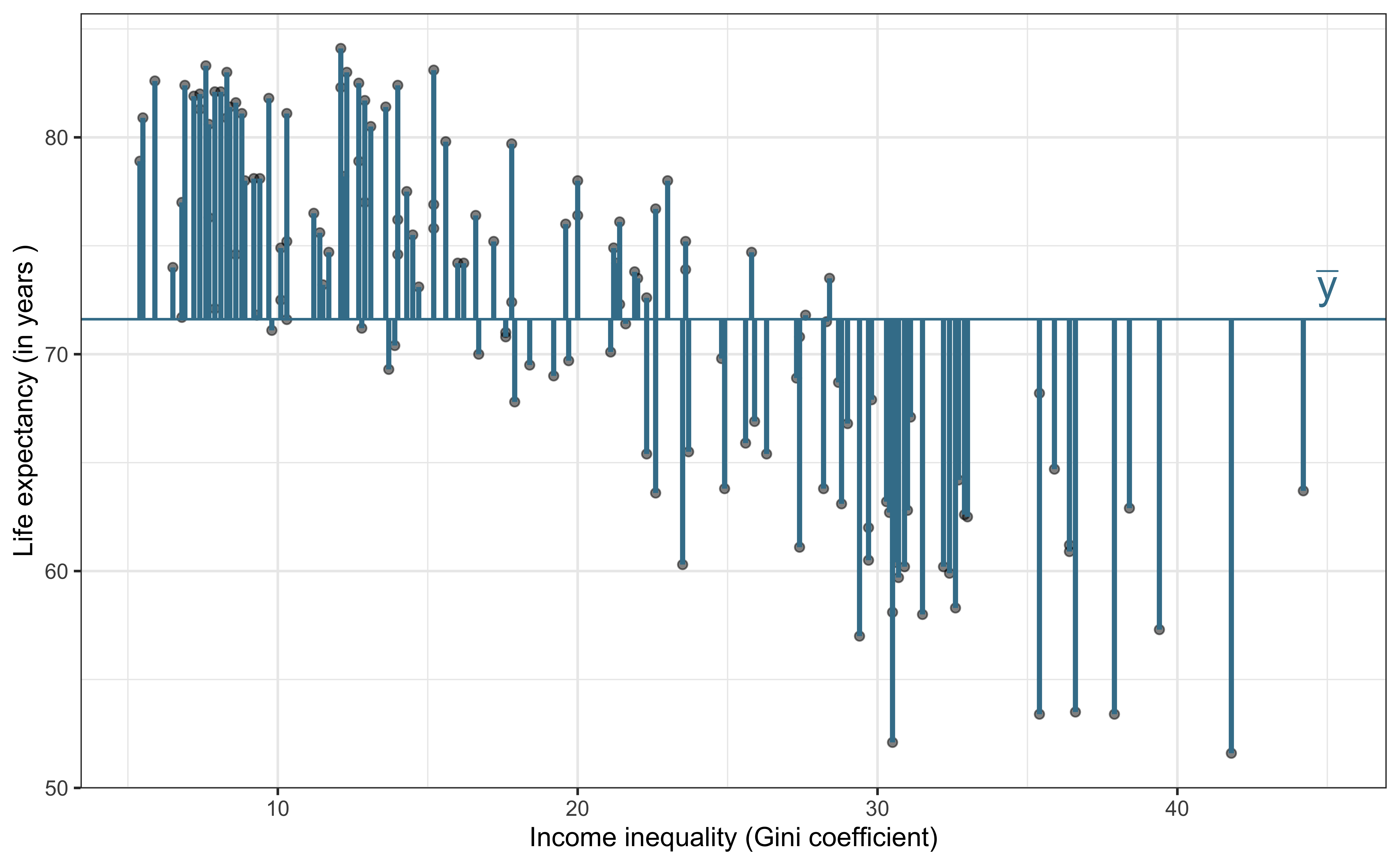 - 70% of the variability in income inequality can be explained by life expectancy.