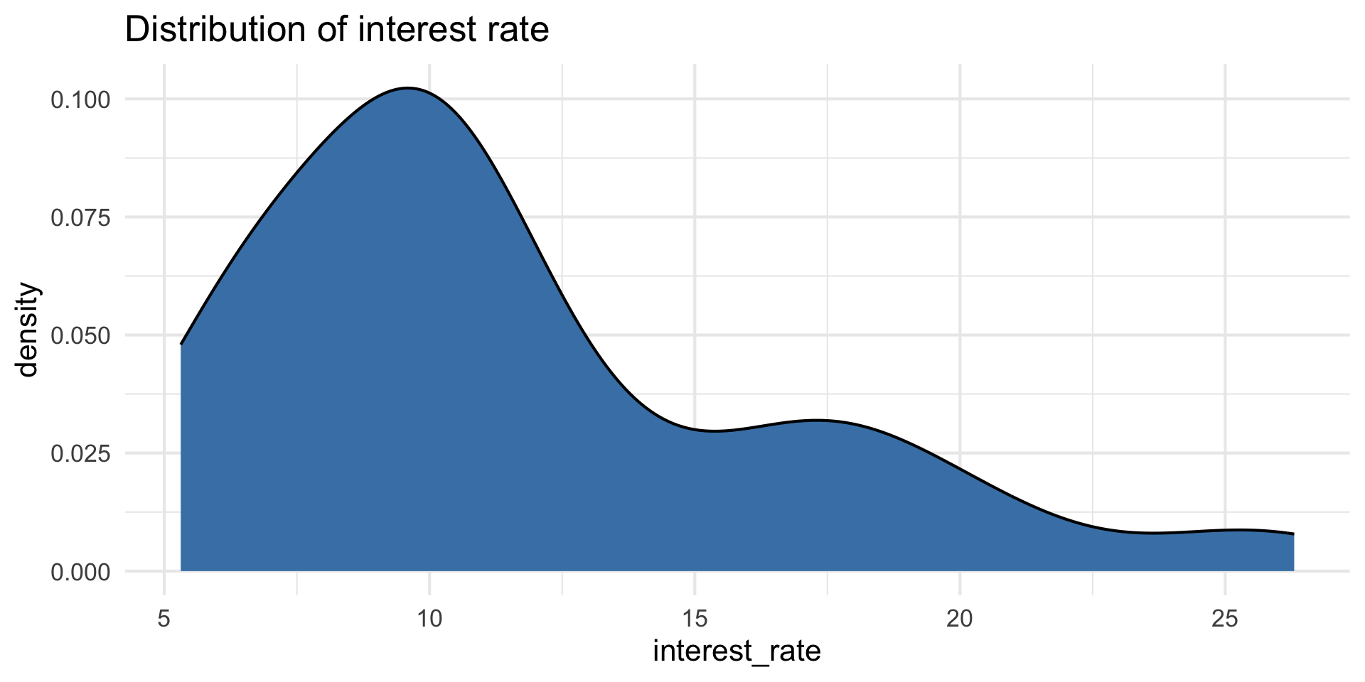 \[ \begin{align}\hat{\text{interest_rate}} = 10.726 &+0.671 \times \text{debt_to_income}\\ &+ 2.211 \times \text{source_verified}\\ &+ 6.880 \times \text{verified}\\ & -0.021 \times \text{annual_income_th} \end{align} \]