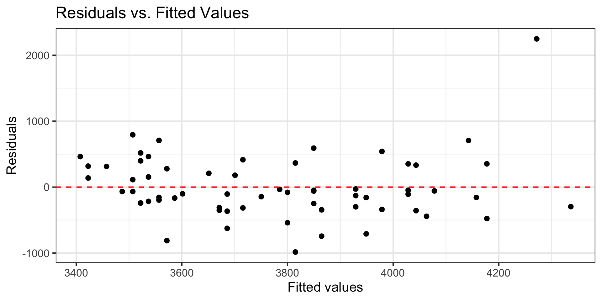 - Look at plot of residuals versus fitted (predicted) values.